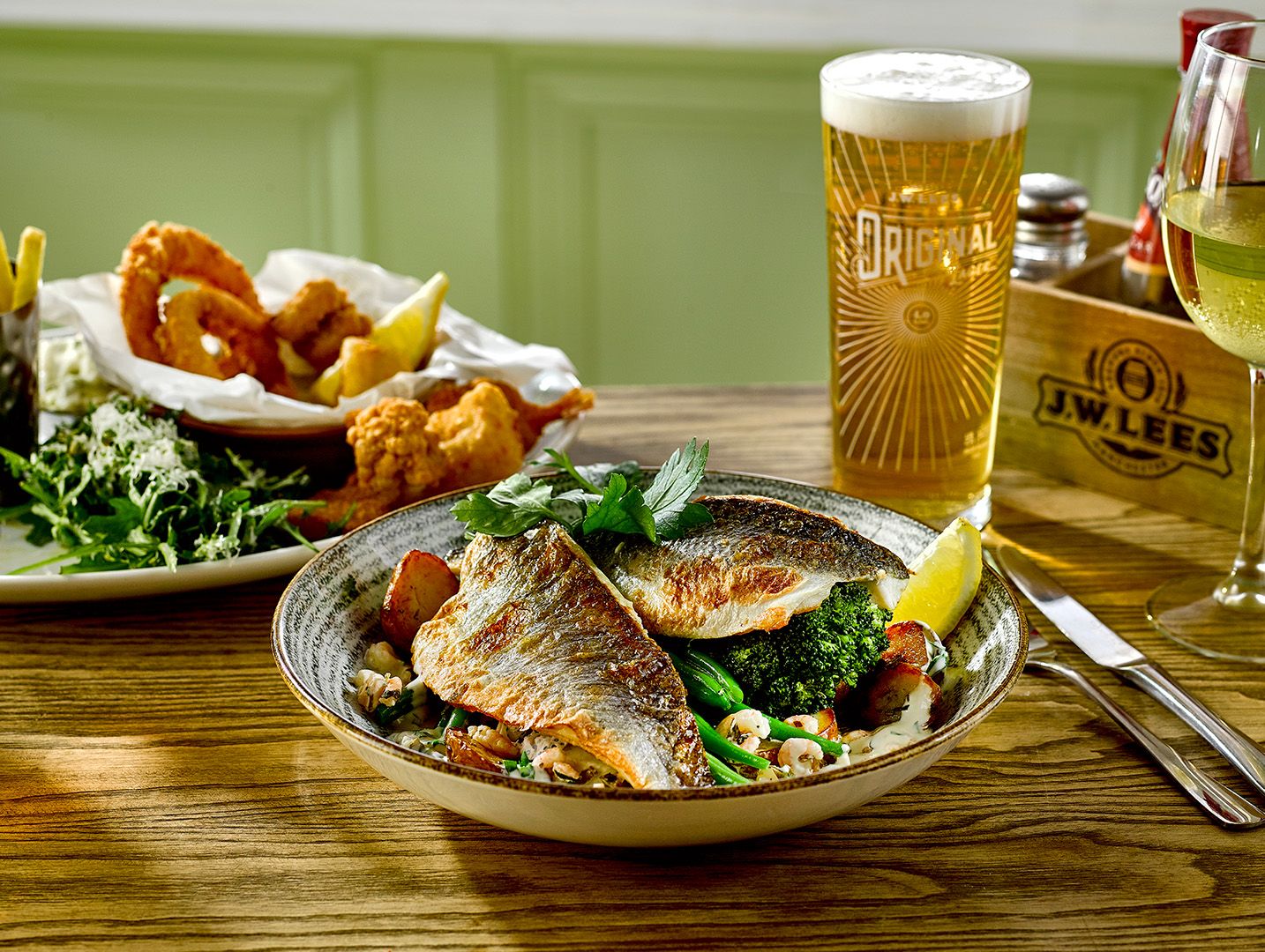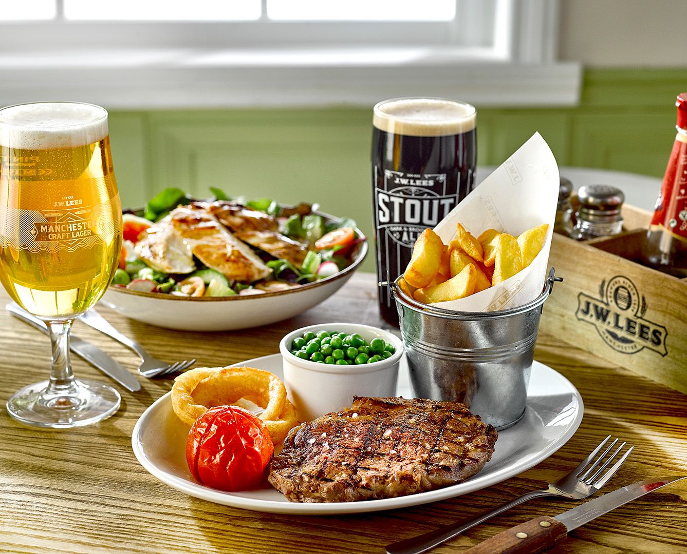 Pull up a chair with our new Spring dishes in Timperley. Proper tasty pub grub for warm days and cold pints with friends and family. Made for pairing with our Manchester-made beers, our spring and summer dishes include new seasonal salads, fish dishes, succulent grills and more. Not forgetting your pub favourites like our legendary cheese & onion pie, John Willie’s beer battered fish and the iconic Brewery tower burger (none are bigger).